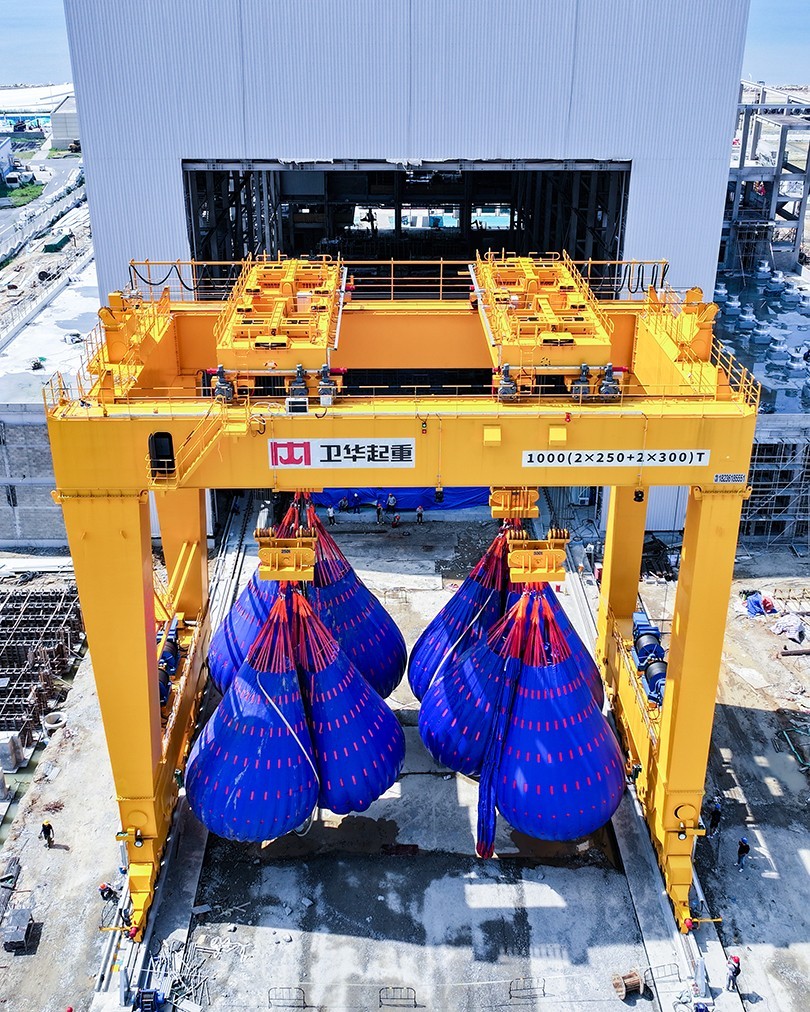 近日,在福建省福清市江阴港国家级海上风电研究与试验检测基地,河南世界杯下单平台网站官网1000t双主梁门式起重机顺利完成重载实验并投入运营。