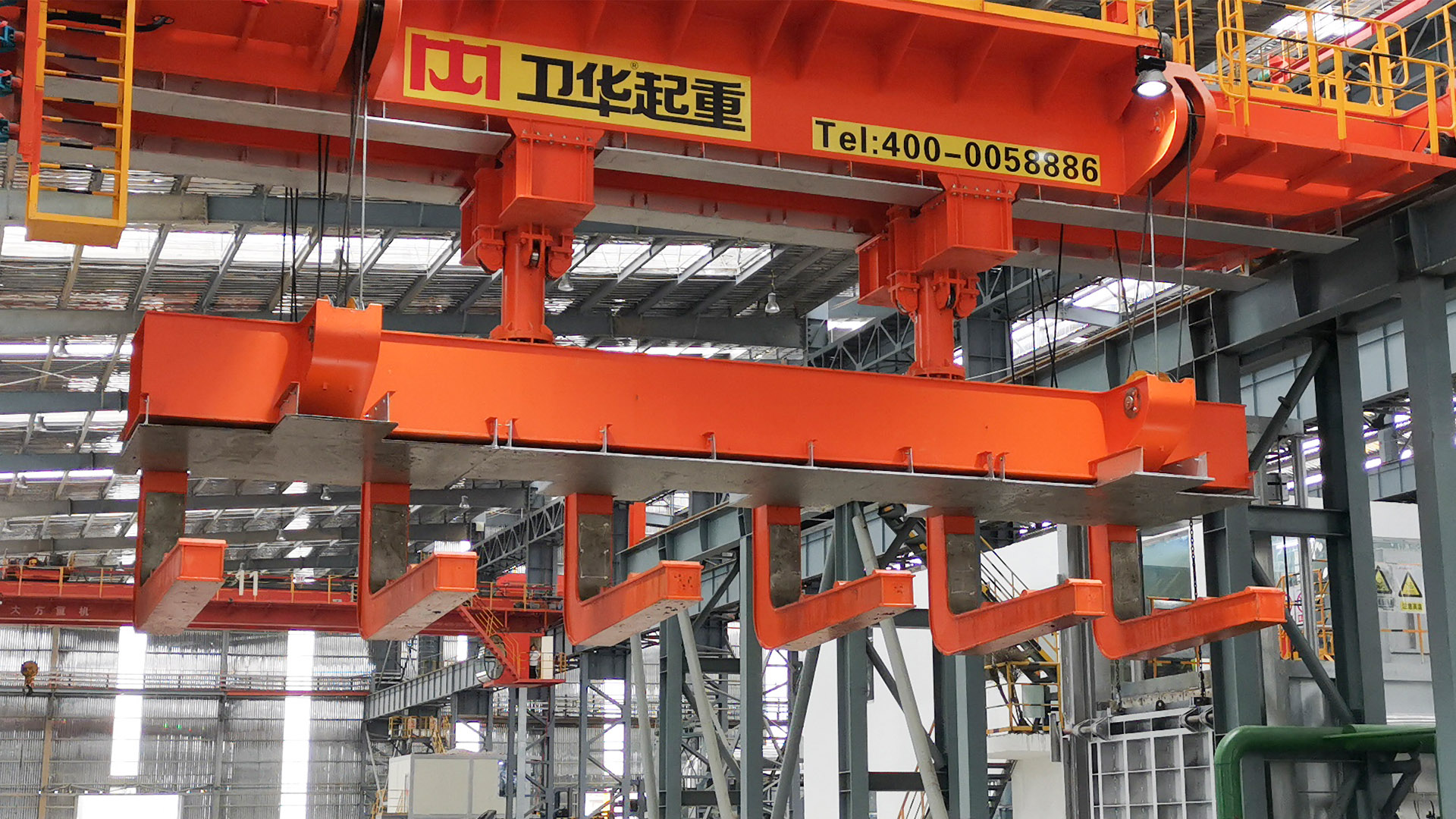 世界杯下单平台网站官网智能淬火起重机主要用于高温型材或棒材的吊装并进行淬火工艺。