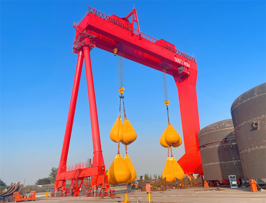 近日,服务于张家港富瑞重型装备有限公司的500t门式起重机,顺利通过验收。